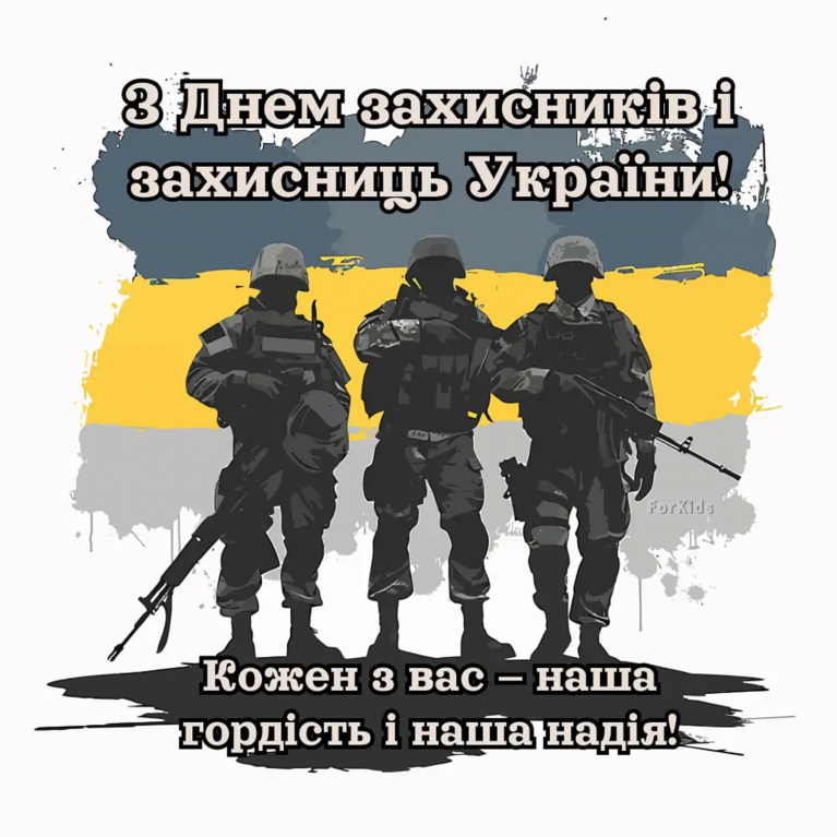 У цей день вітаємо Вас з Днем захисників і захисниць України! Бажаємо вам незламного духу та впевненості в перемозі. Нехай ваші зусилля будуть винагороджені миром і спокоєм, щоб кожна мить вашого життя була сповнена радості, щастя та успіхів у всіх ваших починаннях.